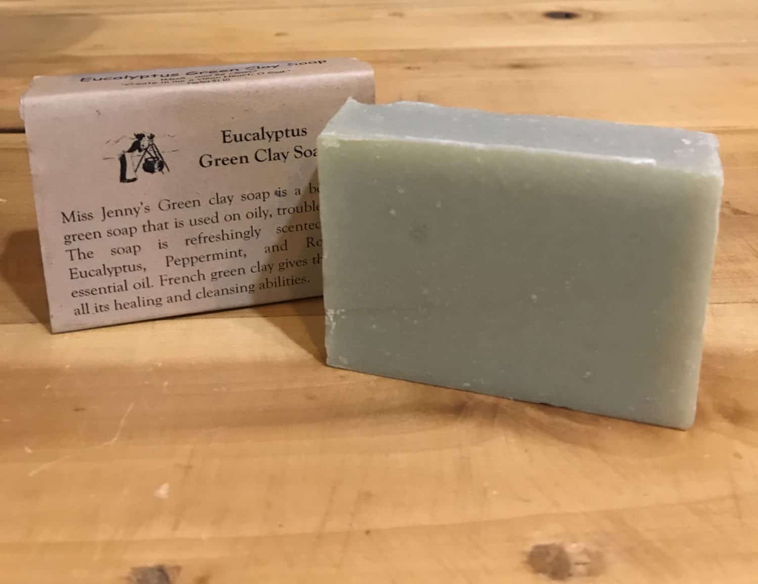 Miss Jenny’s Eucalyptus Green Clay Soap is a beautiful green soap that is used on oily, troubled skin. The soap is refreshingly scented with Eucalyptus, Peppermint, and Rosemary essential oil. French green clay gives this soap all its healing and cleansing abilities. Bars average 4-5 oz (weight).