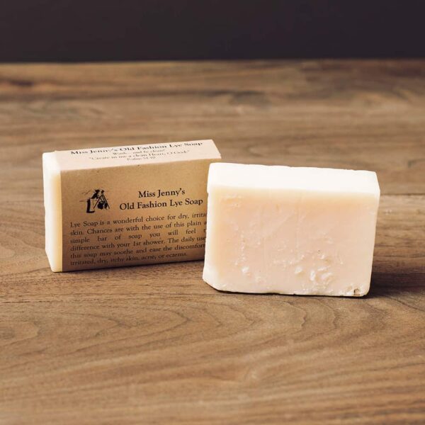Miss Jenny’s Lye soap is plain and simple, a white bar of mild, unscented soap made from water, lye, and tallow or lard. It is made in a big wash pot just like Grandma would have made it. “Her soap could be used to wash most anything.” Bars average 4-5 oz (weight).