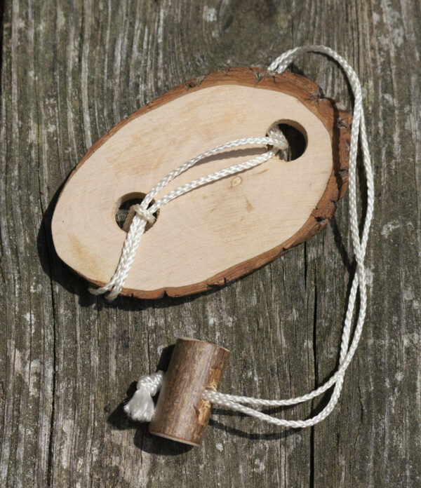 Try this moderately difficult brain teaser. The object of this puzzle is to remove the cord completely from the wooden piece without untying or cutting the cord. Lots of fun and once you solve it, you can always put the cord back (in reverse order) to give someone else a try.